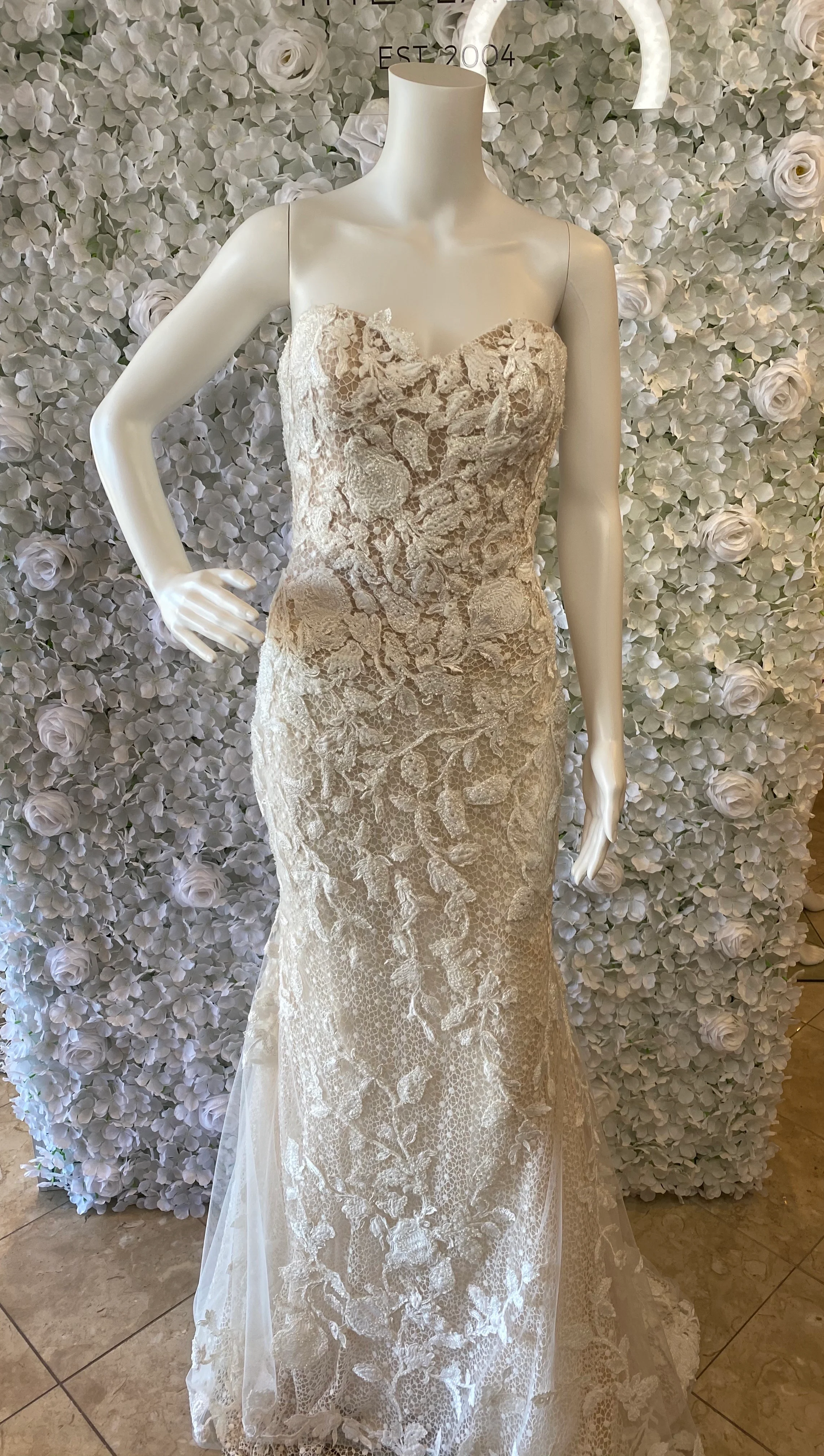 Pronovias Atelier Ramses Off White Guipure and Chantilly, Tulle and Embroidered Thread and Beaded Sample Without Cape, Illusion lace Mermaid gown